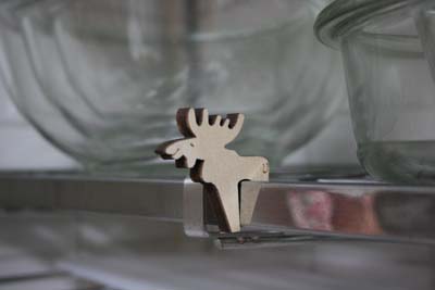 写真の通り、棚にかざりつつ、きちんと鍋の見張り番もしてもらっています。