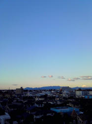 今朝の空。右端に小さく富士山が。